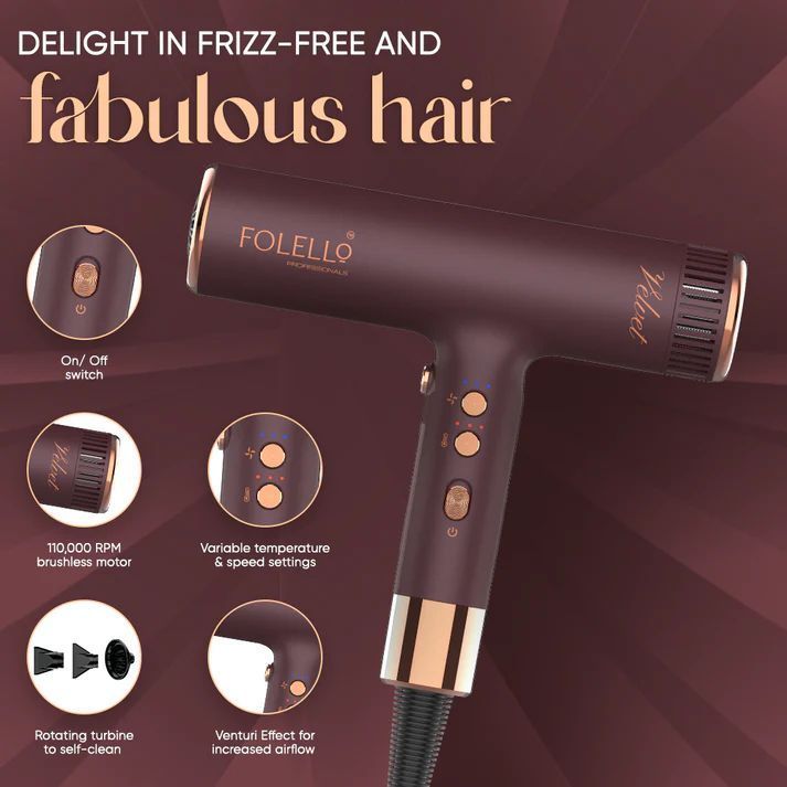 • This hair dryer uses a rotating turbine technology with a unique 110,000 RPM brushless motor, which can reduce frizz by 75% and increase its lifespan by 50%.