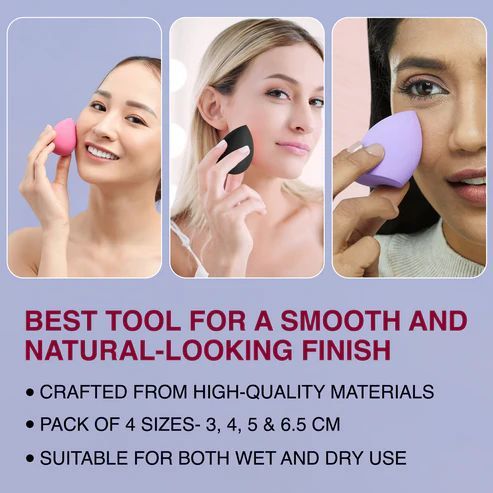 Versatile Sizes: The variety of sponge sizes allows for precise makeup application on different areas of the face, including the under-eye area, cheeks, forehead, and chin.